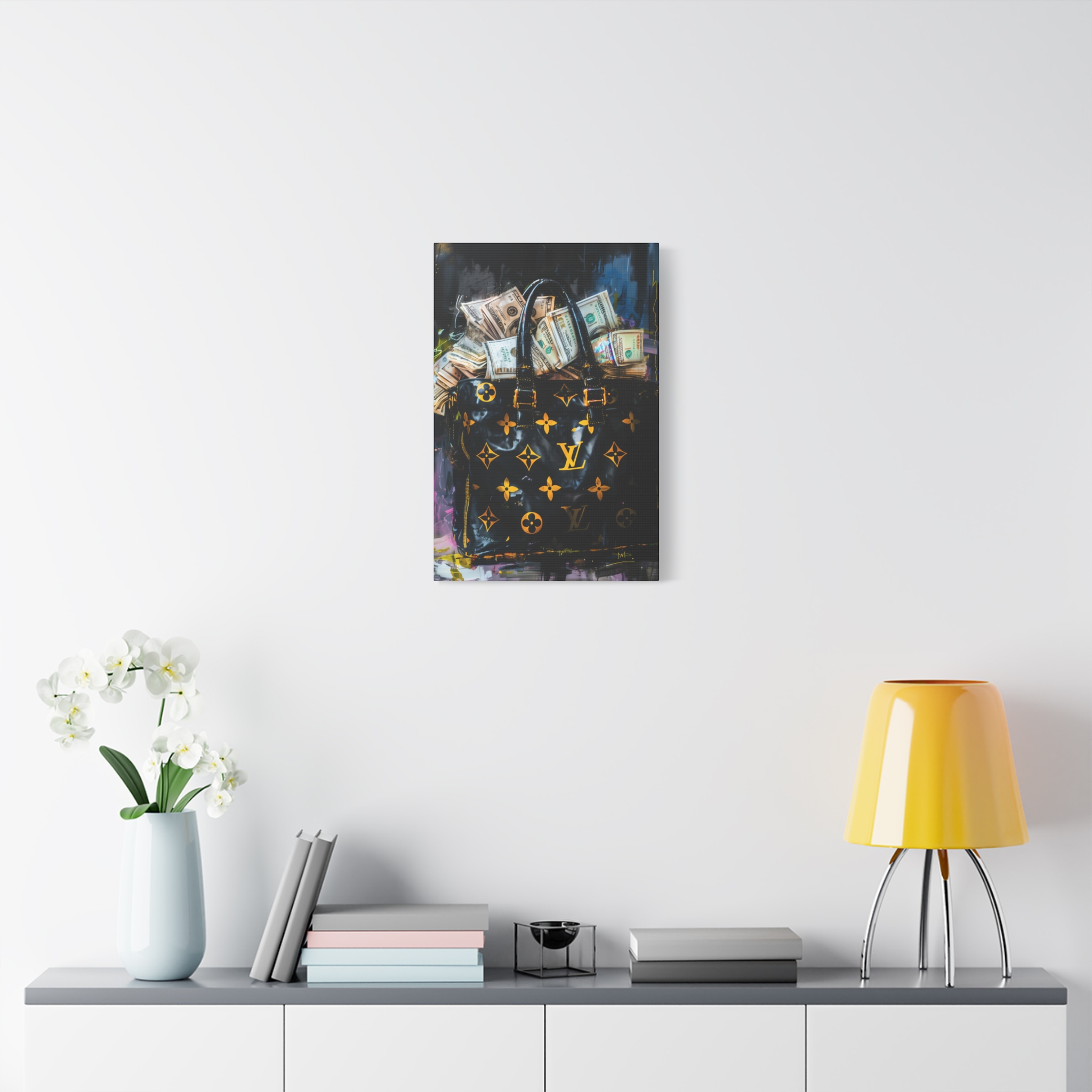 Be the first to review “Luxury Canvas Wall Art, Black Designer Handbag with Cash, Home Decor, Fashion Art, Gift for Her, Stylish Room Decor”